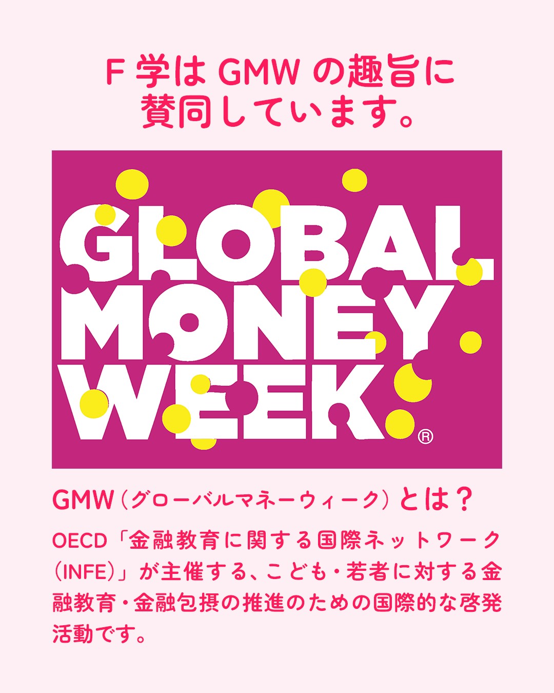 株式会社F学では、GMWの趣旨に賛同し、積極的に金融教育を広めてまいります。