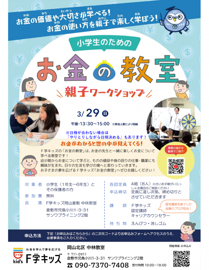 中林教室でも、岡山、倉敷にて親子ワークショップを開催しております。